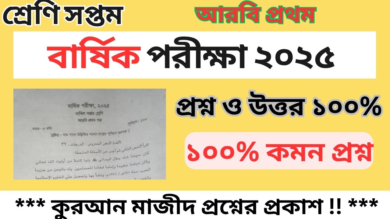 আরবি ১ম বার্ষিক পরীক্ষা প্রশ্ন ২০২৫ সপ্তম || Arabi Pratham Saptam varshik Pariksha 2025 | lekha pora
